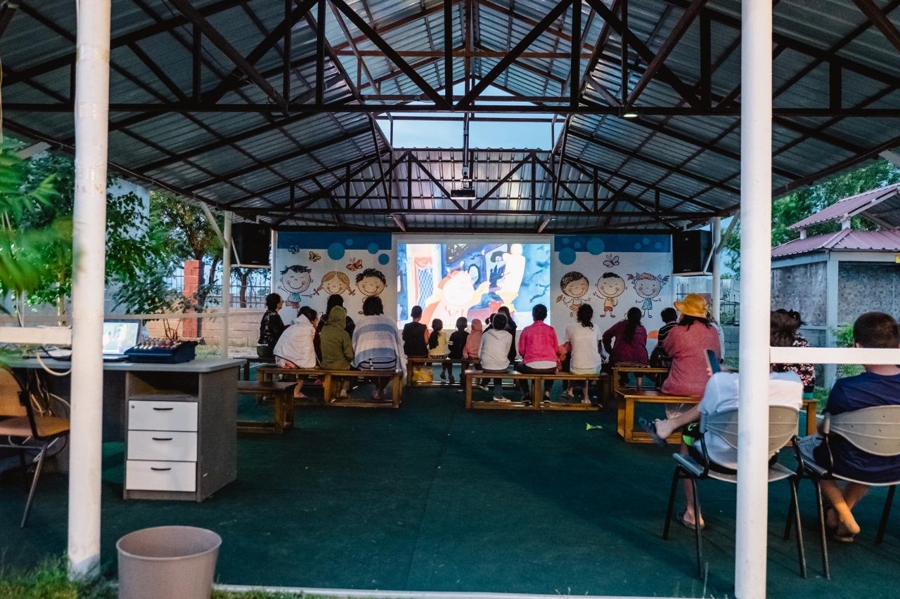 К вашим услугам детская летняя площадка для проведения киносеансов и игр. Так же на территории имеются батуты, теннисные столы, игровая площадка, горка, качели и т.д.