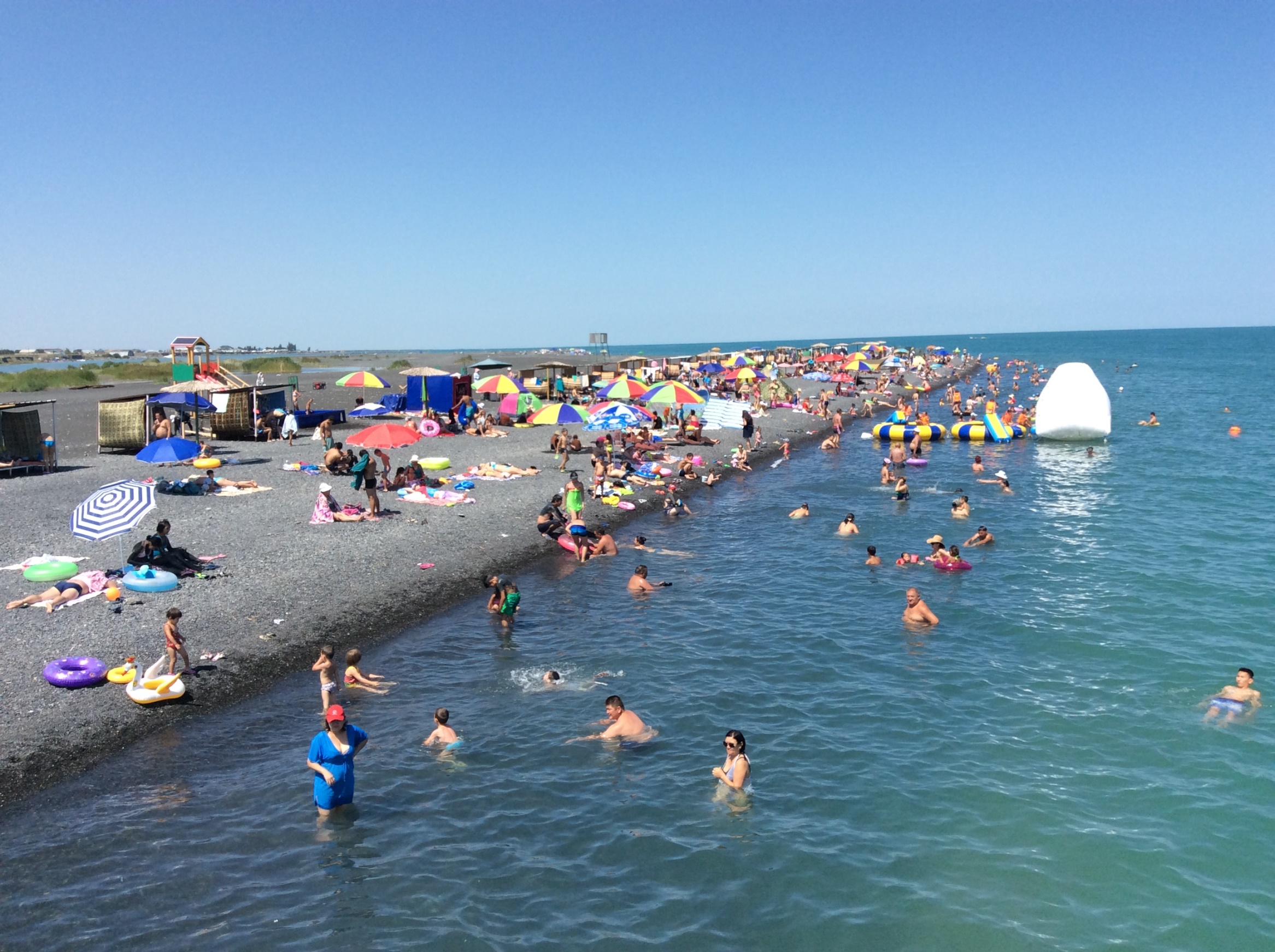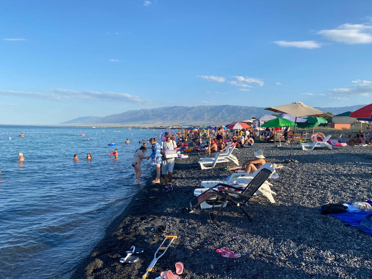 Пляж — черная вулканическая галька (шунгит), которая нагреваясь, оказывает оздоровительный эффект. Чистый и ровный пляж без склонов и ухабов, пологий вход в воду.