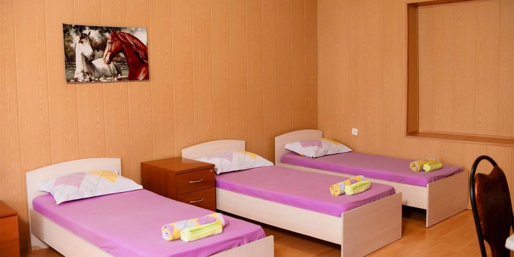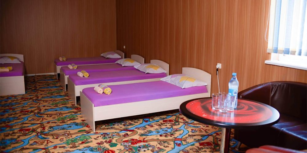 Двухэтажный 3-х комнатный номер с балконом. В номере: 8 кроватей, большой холодильник, столы и стулья, тумбочки, телевизоры, шкаф для одежды, москитная сетка, кондиционер, диван и кресла. Один санузел и душ на первом этаже. Номер очень просторный и большой. Для доп мест можем предоставить по наличию отдельные кровати и/или обычные артопедические пружинные матрацы толщиной 20 см.